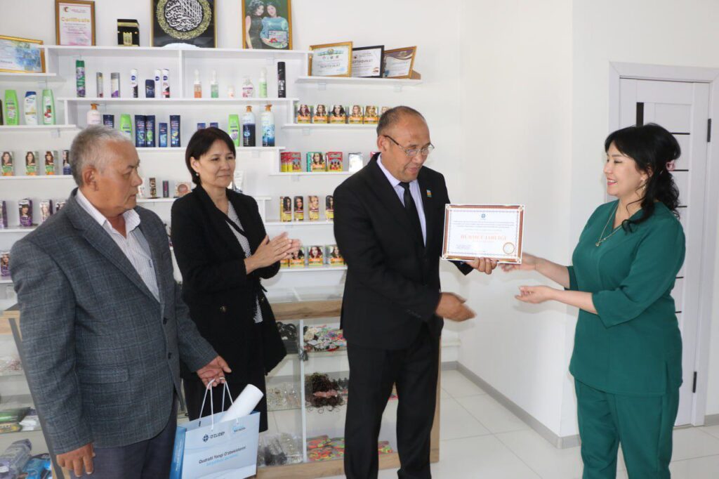 Тадбир давомида иштирокчилар Назира Тилеумуратованинг гўзаллик салони ва тикувчилик цехида бўлиб, унда яратилган имкониятлар билан яқиндан танишди.