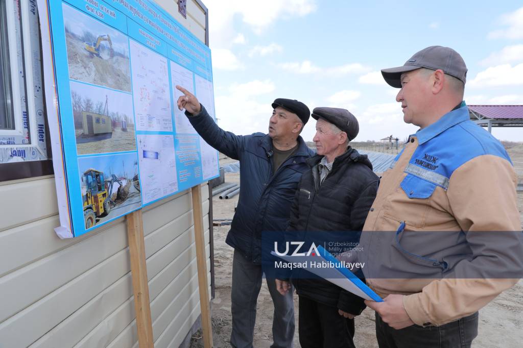 Маҳалла ҳудудидан оқиб ўтивчи Бӯзатов канали ёнидан қуввати 2500 метр куб сувни тиндириш имкониятига эга, узунлиги 70 метр, эни 12 метр ва чуқурлиги икки ярим метр бўлган сув омборининг қурилиш ишлари жуда қизғин. Қурилиш “Aralmexanizatsya” масъулияти чекланган жамияти томонидан олиб бориляпти. Жараёнга 50 нафарга яқин ишчи ва бир нечта техника жалб этилган. Томорқа ер эгаларига оқар сувни етказиб бериш учун барча имкониятлар ишга солинган. Режа бўйича 5 километрдан ортиқ сув тармоқларини тортиш белгиланган бўлиб, ҳозирда ишлар якунланиш арафасида.