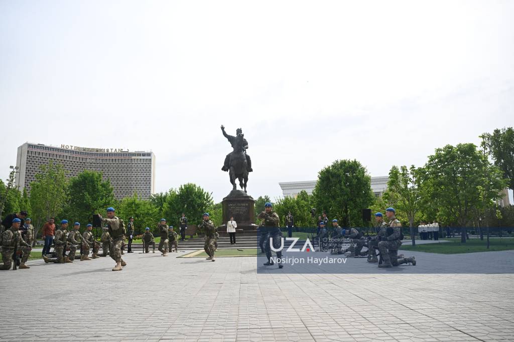 Мудофаа вазирлиги тизимидаги “Фахрий қоровул” бўлинмаси ҳамда жанговар гуруҳнинг кўргазмали чиқишлари намойиш қилинди.