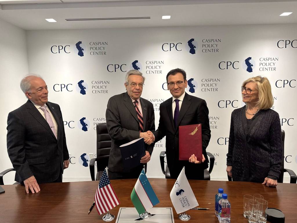 Вашингтон шаҳрига ташрифи доирасида Марказий Осиё халқаро институти директори Жавлон Ваҳобов Каспий сиёсий маркази Хавфсизлик ва сиёсат дастури раҳбари, бошқарув кенгаши аъзоси Ричард Хогланд билан ҳамкорлик тўғрисида битим имзолади.