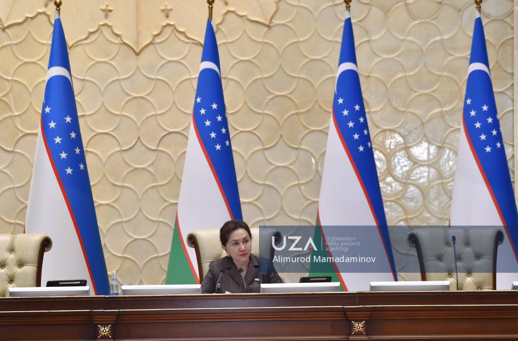 Видеоконференцалоқа тарзида ўтказилган ялпи мажлисни Ўзбекистон Республикаси Олий Мажлиси Сенати Раиси Танзила Норбоева олиб борди.