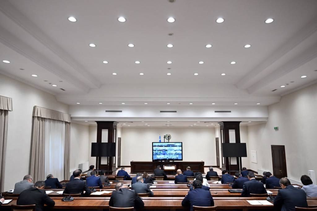 Президент Шавкат Мирзиёев раислигида тиббиёт соҳасидаги ислоҳотларнинг навбатдаги босқичида турган устувор вазифалар муҳокамасига бағишланган видеоселектор йиғилиши давом этмоқда.
