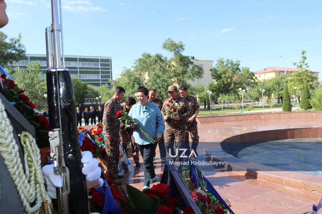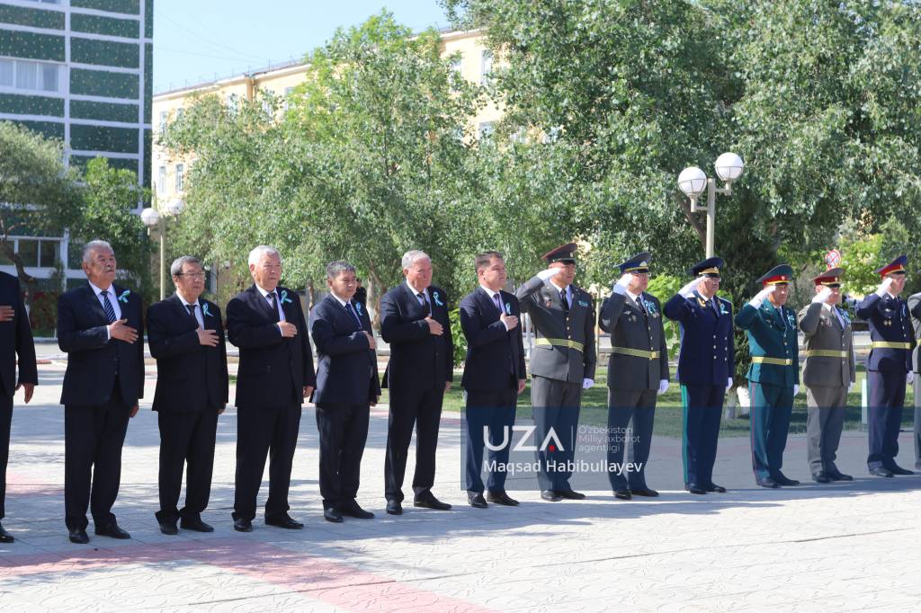Тадбирда Қорақалпоғистон Республикаси Жўқорғи Кенгеси ва Вазирлар Кенгаши, Шимоли-ғарбий ҳарбий округ қўмондонлиги, Қуролли Кучлар тизимига кирувчи тузилмалар, шунингдек, давлат ва жамоат ташкилотлари вакиллари ҳамда ёшлар ҳарбий оркестр садолари остида ҳайкал пойига гулчамбарлар қўйиб, Ватан озодлиги йўлида курашиб ўтганларнинг хотирасини ёдга олди.