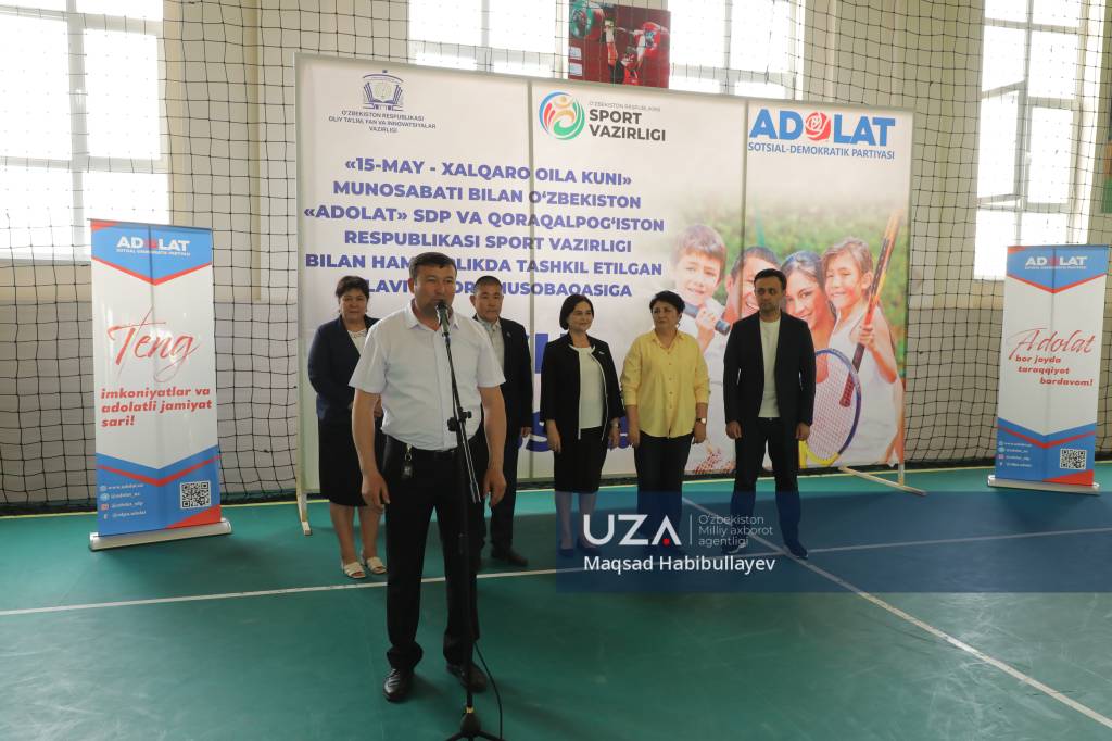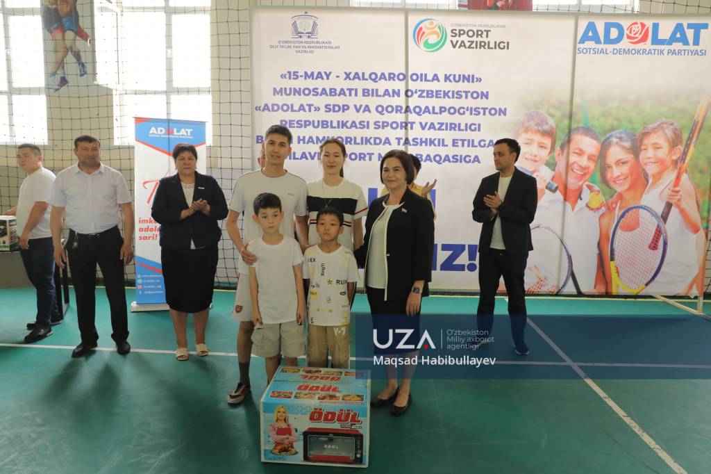 Ажиниёз номидаги Нукус давлат педагогика институтида Ўзбекистон “Адолат” социал-демократик партияси ҳамда Қорақалпоғистон Республикаси Спорт вазирлиги ҳамкорлигида оилалар ўртасида аҳиллик, барқарорлик ва соғлом турмуш тарзини тарғиб этувчи мусобақа уюштирилди. Тадбирнинг асосий мақсади оилавий спортни оммалаштириш, турли ёшдаги фуқаролар ўртасида жисмоний фаолликни кучайтириш, оилалар ўртасидаги ҳамжиҳатликни мустаҳкамлашдир.