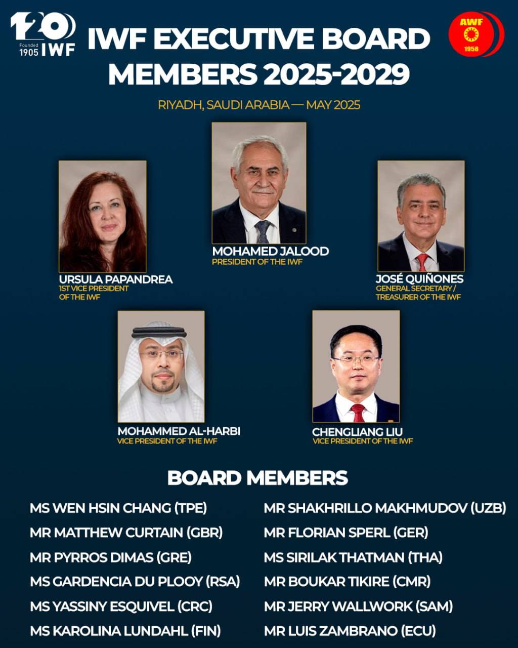 Делегатларнинг овоз бериши натижасида 17 нафар мутахассис IWF нинг бошқарув органи Ижроия кенгаш аъзолигидан жой олди.