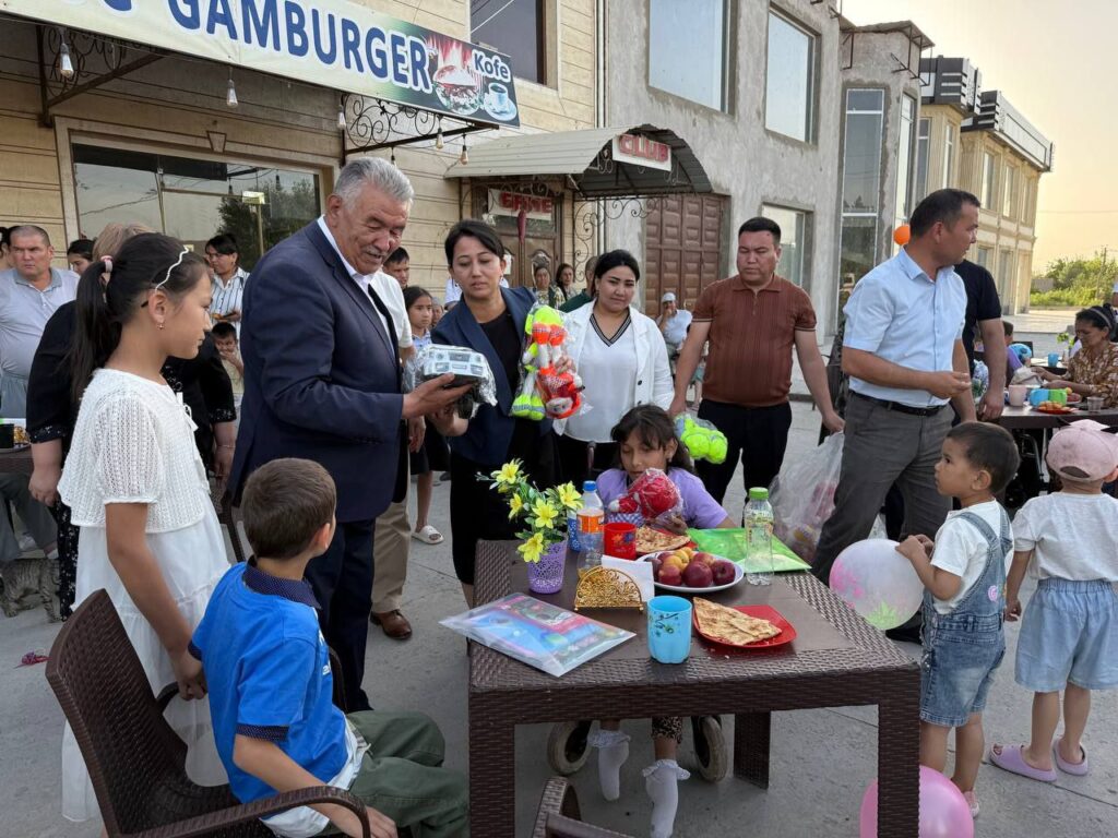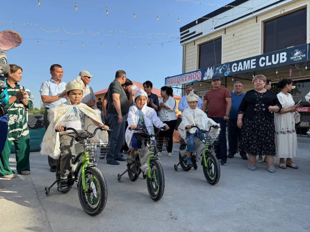 Турли таомлар, ширинликларга тўла дастурхон ёзилиб, болаларга туҳфа этилди. Тадбиркор Дилдора Хайтбоева томонидан 3 нафар болага велосипедлар совға қилинди.