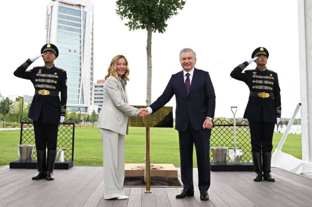 Ўзбекистон Республикаси Президенти Шавкат Мирзиёев ва Италия Бош вазири Жоржа Мелони Конгресс маркази хиёбонида биргаликда эман экдилар.