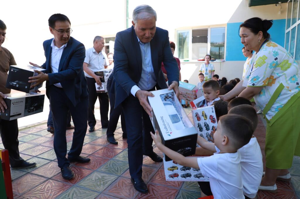 Мактабгача таълим ташкилотида ўтказилган тадбирда Қорақалпоғистон Республикаси Вазирлар Кенгаши Раиси Ф.Эрманов болаларга байрам муносабати билан совғалар топширди.