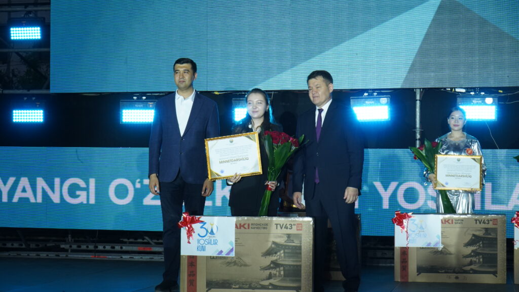 Тантанали маросимнинг асосий қисмларидан бири — фаол ва фидойи ёшларни тақдирлаш бўлди. Жамиятда фаол иштирок этиб, турли йўналишларда юқори ютуқларга эришган бир гуруҳ ёшлар раҳбатлантирилди. Хусусан, Ларина Зарина, Алишер Акимов, Назокат Калназарова, Асемай Уракова ва Ғайратдин Сейтеков каби ташаббускор ва илғор ёшларга қимматбахо совғалар топширилди.