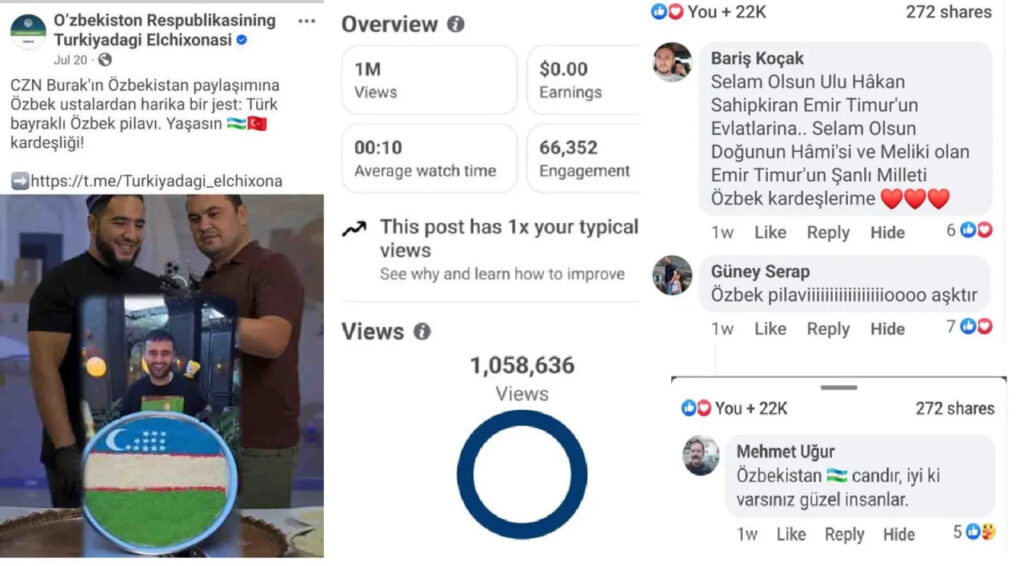 Ўзбекистоннинг Туркиядаги элчихонасининг ижтимоий тармоқлардаги саҳифасида эълон қилинган видеоконтентни 1 миллиондан ортиқ киши томоша қилди