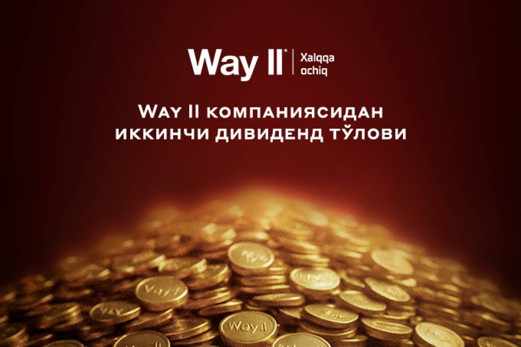 3-март 2025-йилда Way II ўз инвесторларига биринчи дивиденд тўловини амалга ошириб, компаниянинг молиявий барқарорлиги ва самарадорлигини амалда исботлади. Дивиденд тўловлари Way II’нинг бизнес модели ҳақиқий даромад келтираётганини ва ўз мажбуриятларига қатъий амал қилаётганини кўрсатди. Шундан сўнг янги инвесторлар сонида табиий ўсиш кузатилмоқда, бу эса компанияга бўлган ишончнинг юқорилиги ва реал инвестиция воситаларига қизиқишнинг ортаётганини тасдиқлайди.