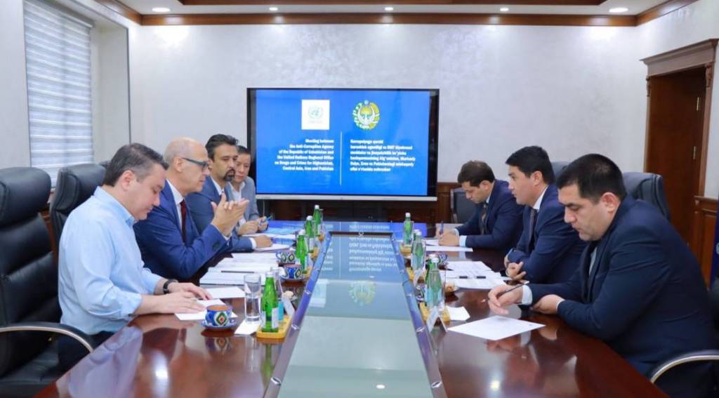 Коррупцияга қарши курашиш агентлиги директори Акмал Бурхонов БМТ Гиёҳванд моддалар вa жиноятчилик бўйича бошқармасининг Афғонистон, Марказий Осиё, Эрон вa Покистон бўйича минтақавий вакили Оливер Столпе билан учрашди.