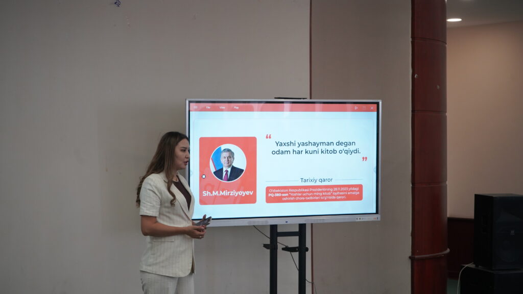 Тадбирнинг асосий меҳмони — «Мутолаа» лойиҳаси менежери Ҳурлиман Полатовна бўлиб, у Ёшлар ишлари агентлигининг мазкур ташаббуси ҳақида батафсил маълумот берди. Спикер «Мутолаа» доирасидаги янги китоблар тақдимотини ўтказиб, ёшларни мутолаага кенгроқ жалб этиш мақсадида амалга оширилаётган ишлар ҳақида сўзлаб берди.