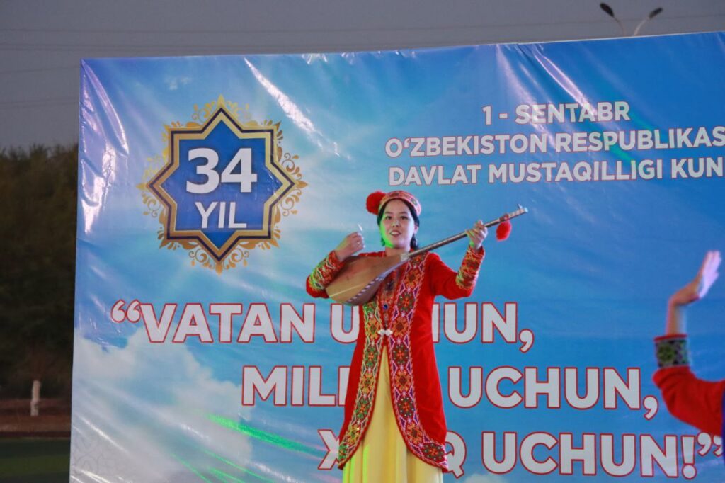 Байрам тантанасини туман ҳокими Б.Уббиниязов кириш сўзи билан очиб берди ва туман аҳлини Мустақиллигимизнинг 34 йиллик байрами билан самимий табриклади. Унда туманда барча соҳаларда эришилган ютуқлар, амалга оширилаётган ўзгаришлар ҳақида кенг тўхталиб ўтилди.