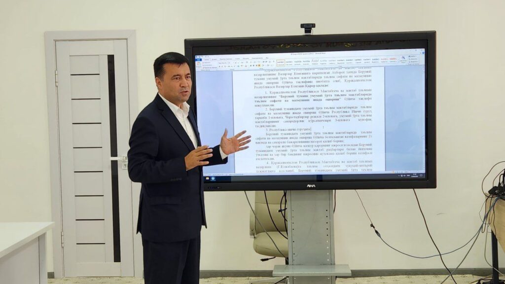 Қорақалпоғистон Республикаси Мактабгача ва мактаб таълими вазирлигида «Беруний туманидаги умумий ўрта таълим мактабларида таълим сифати ва мазмунини янада ошириш чора-тадбирлари тўғрисида»ги Қорақалпоғистон Республикаси Ҳукумати қарори лойиҳасини муҳокама қилиш бўйича ишчи гуруҳ йиғилиши бўлиб ўтди.