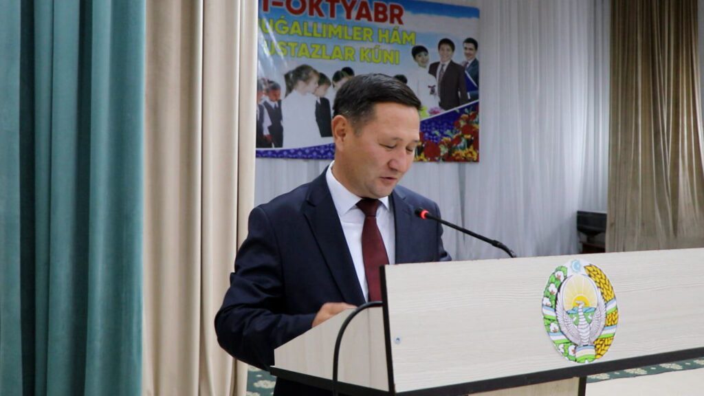 Унда туман ҳокими А.Тажетдинов тадбир иштирокчиларини касб байрами билан табриклаб, сўнгги йилларда Президентимиз раҳбарлигида таълим соҳасида амалга оширилган ислоҳотлар, қўлга киритилган ютуқ ва муваффақиятларга кенг тўхталиб ўтди.