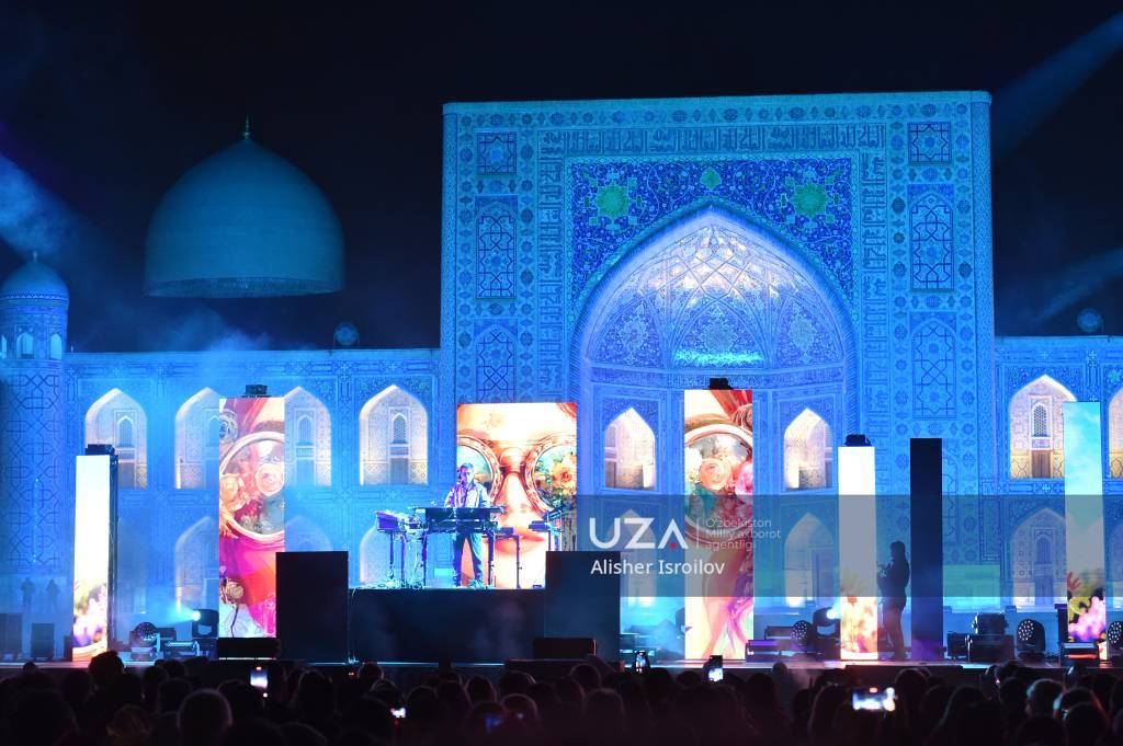 Дунёга машҳур француз бастакори ва ЮНЕСКОнинг яхши ният элчиси Жан-Мишел Жар Регистон майдонида ўз мусиқаларини ижро қилди.