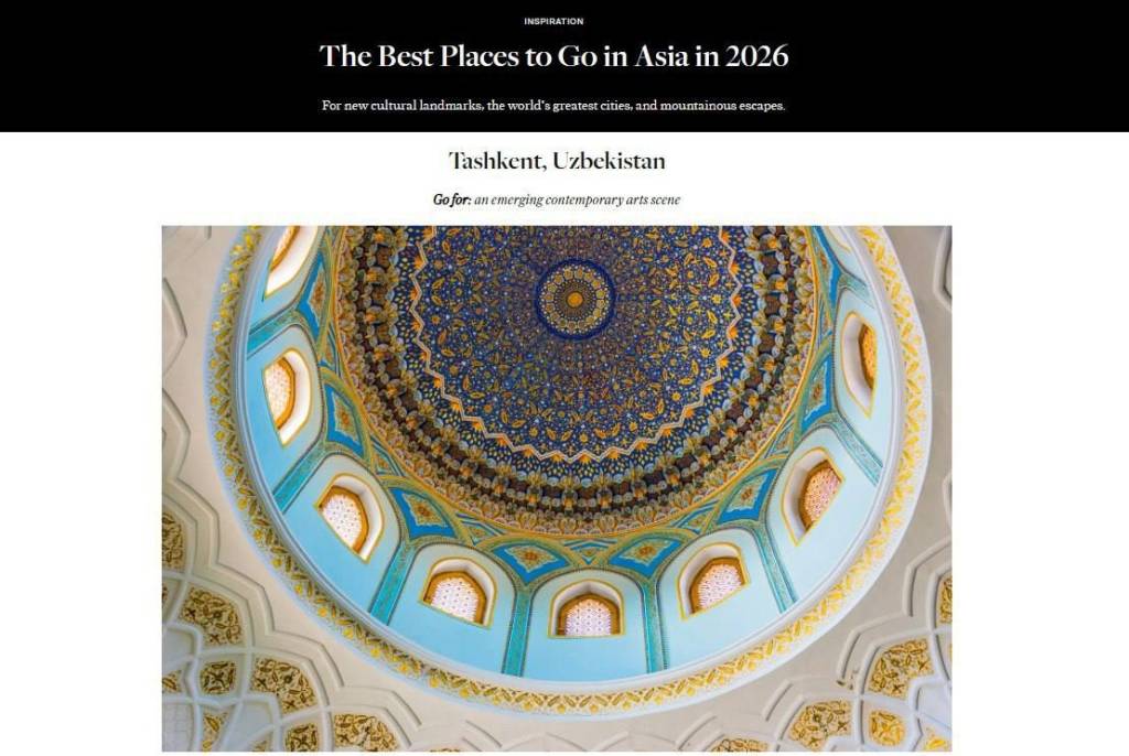 Ўзбекистон Туризм қўмитаси хабар беришича, Тошкент “Condé Nast Traveler” халқаро сайёҳлик журнали томонидан “2026 йилда Осиёда саёҳат қилиш учун энг яхши жойлар” рўйхатидан жой олди.