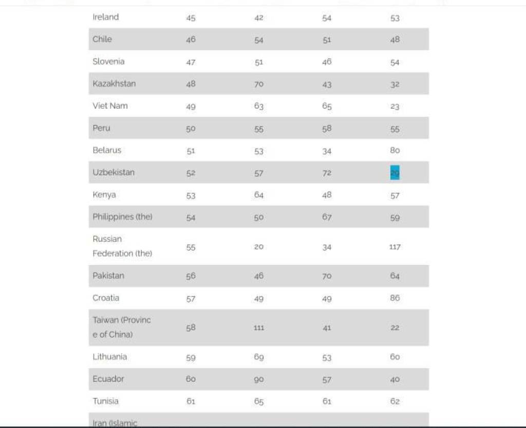 Глобал сифат инфратузилмаси индексида 29-ўринга кўтарилди
