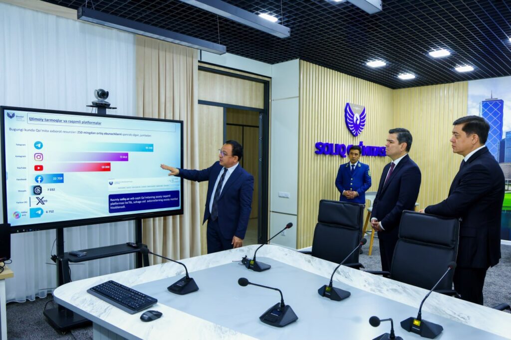 Ташриф давомида Солиқ қўмитаси раиси Фаррух Пўлатов ва жамоатчилик билан алоқалар бошқармаси бошлиғи – матбуот котиби Тўра Тўраев билан биргаликда студиянинг техник имкониятлари ва 2026 йилга мўлжалланган лойиҳалари ҳақида батафсил маълумот берилди.