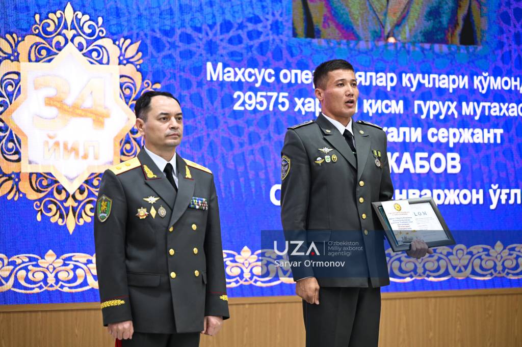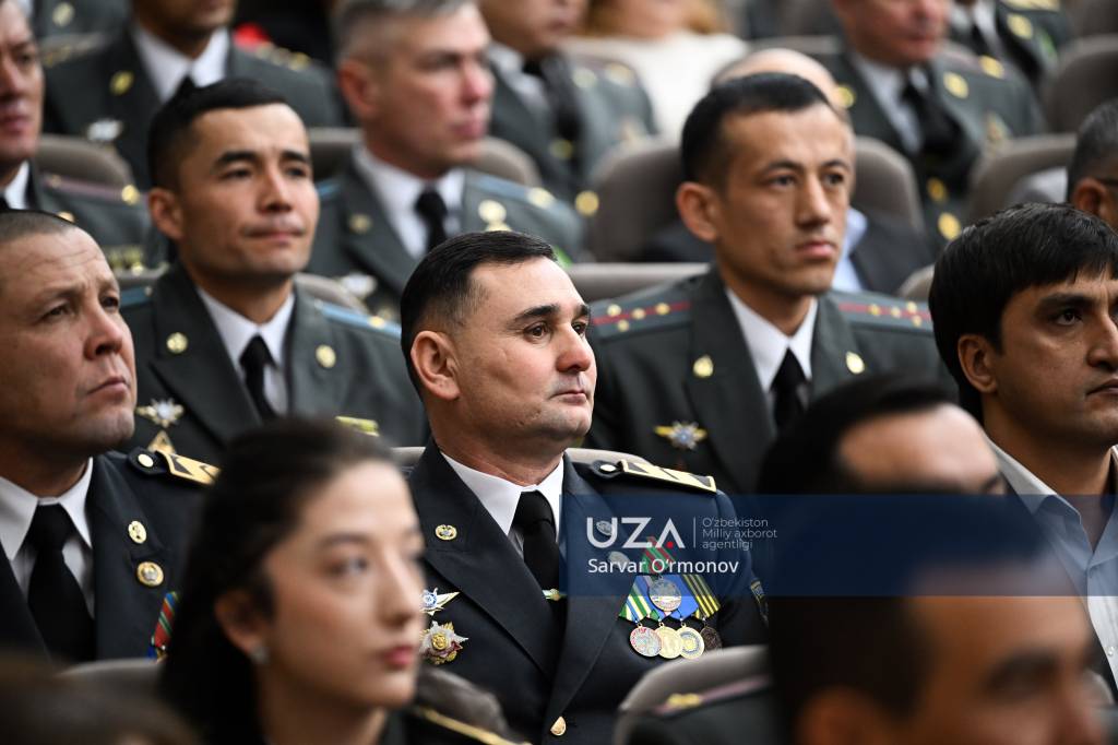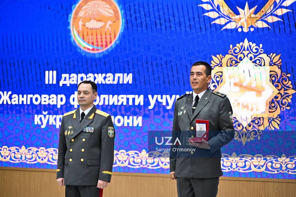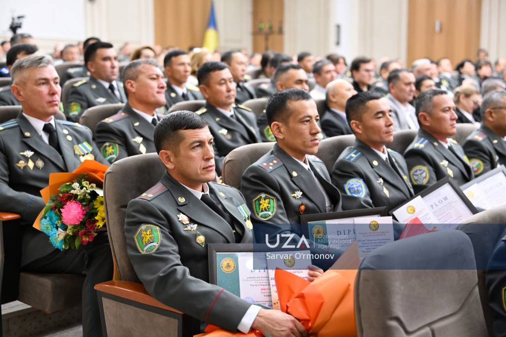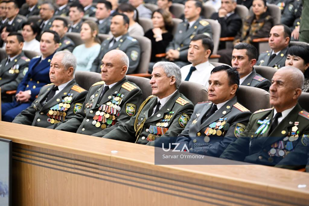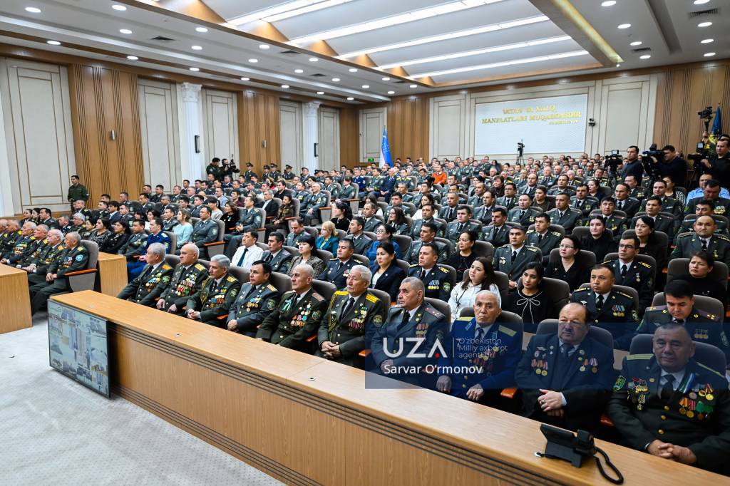 Президентимизнинг “Ўзбекистон Республикаси Қуролли Кучлари ташкил этилганининг 34 йиллиги ҳамда Ватан ҳимоячилари куни муносабати билан ҳарбий хизматчилар ва ҳуқуқни муҳофаза қилиш органлари ходимларидан бир гуруҳини мукофотлаш тўғрисида”ги фармони ўқиб эшиттирилди.