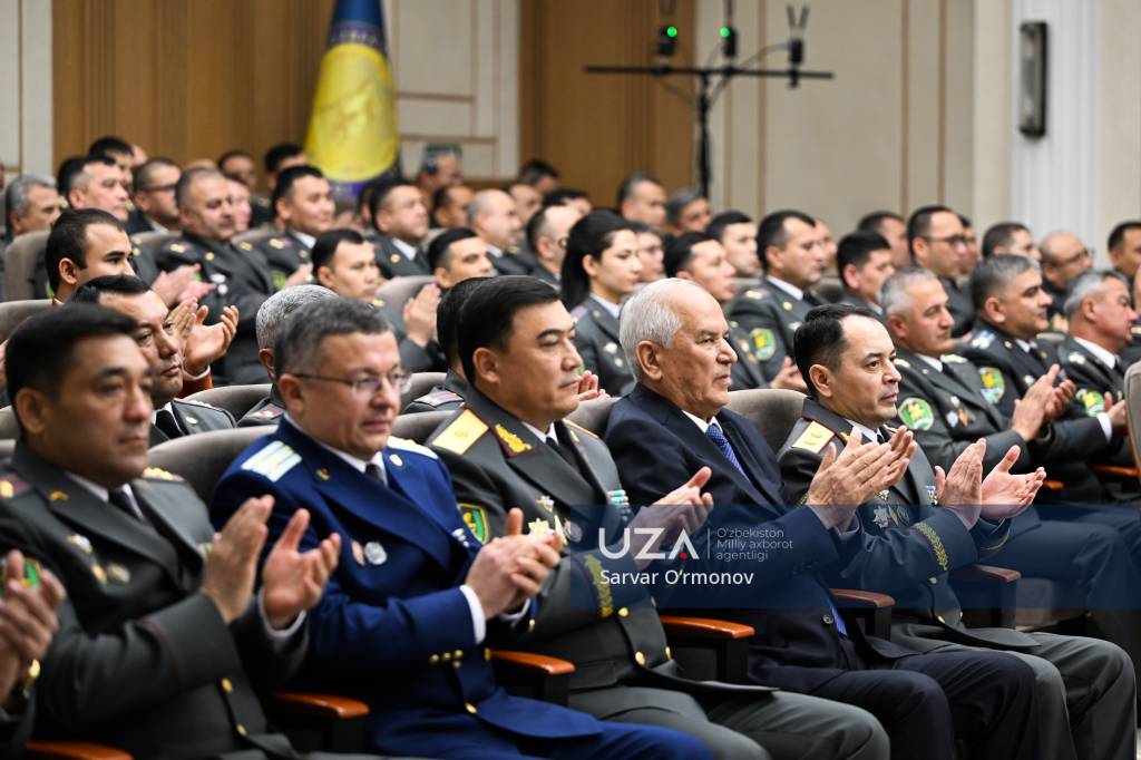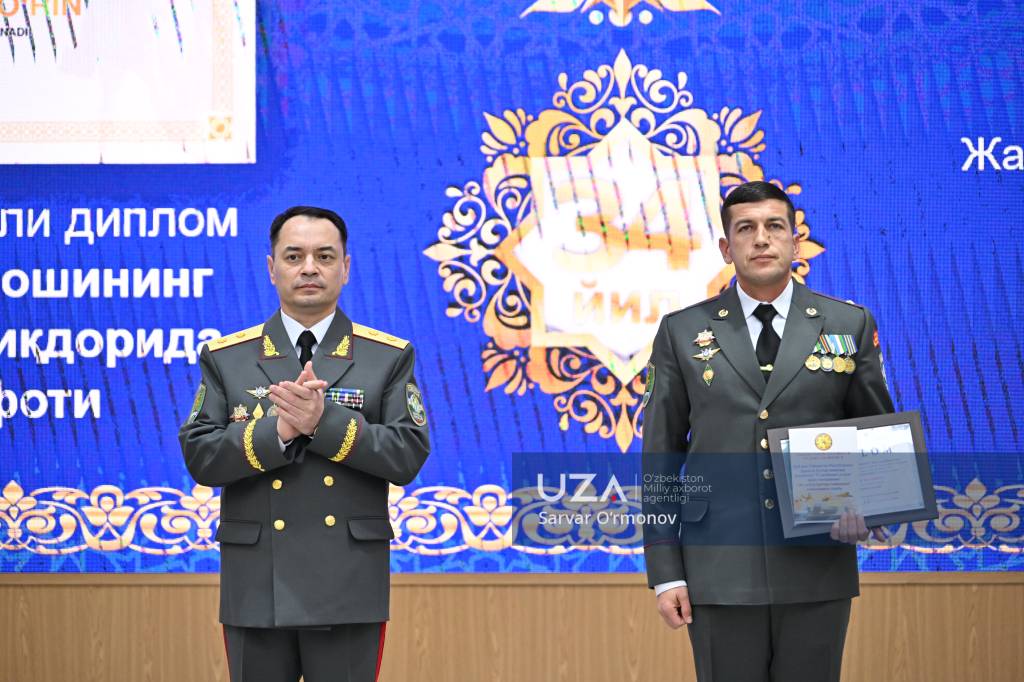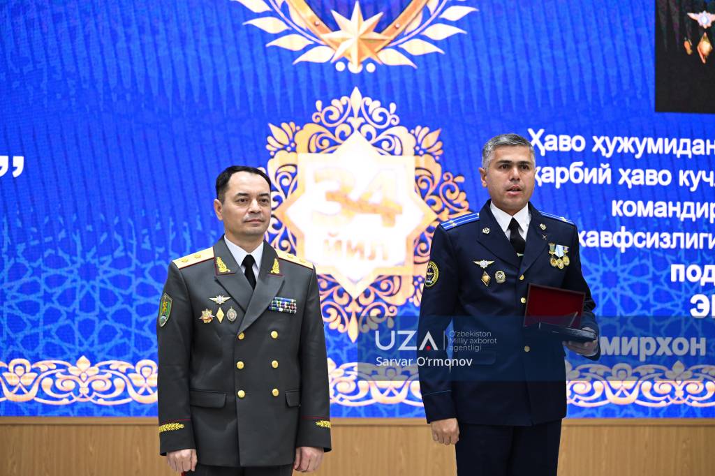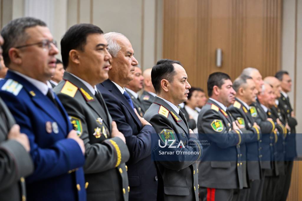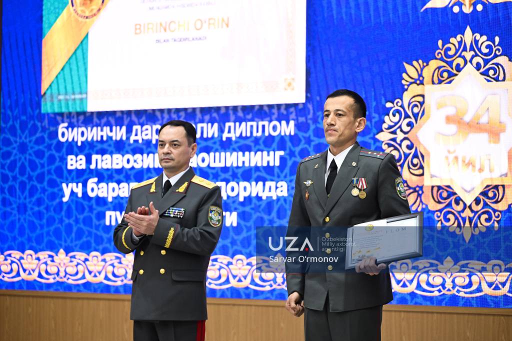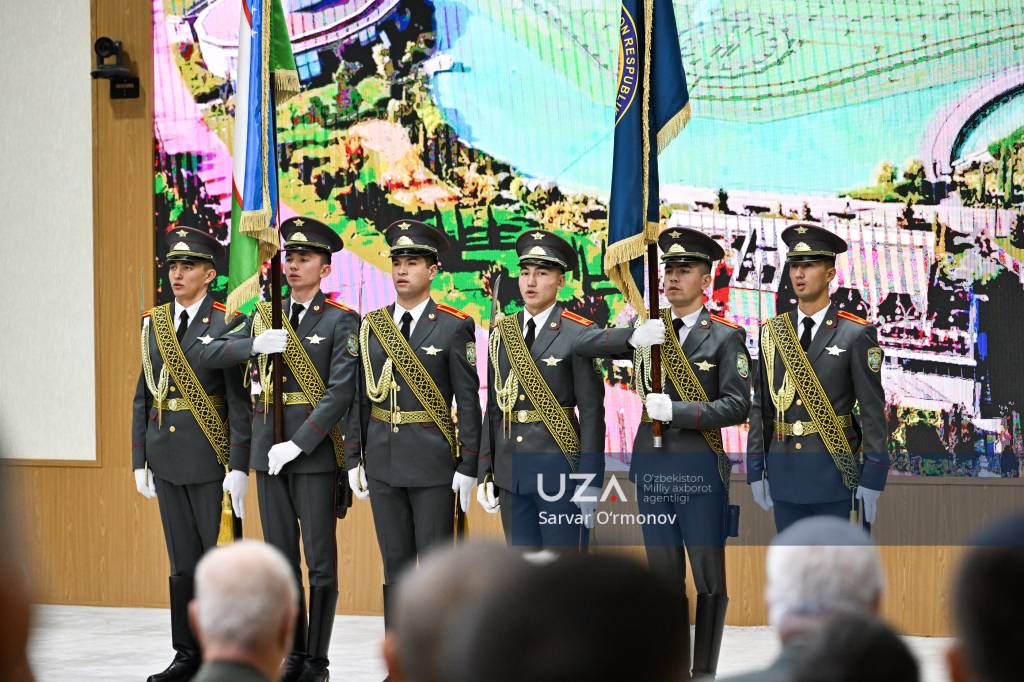 Президентимизнинг “Ўзбекистон Республикаси Қуролли Кучлари ташкил этилганининг 34 йиллиги ҳамда Ватан ҳимоячилари куни муносабати билан ҳарбий хизматчилар ва ҳуқуқни муҳофаза қилиш органлари ходимларидан бир гуруҳини мукофотлаш тўғрисида”ги фармони ўқиб эшиттирилди.