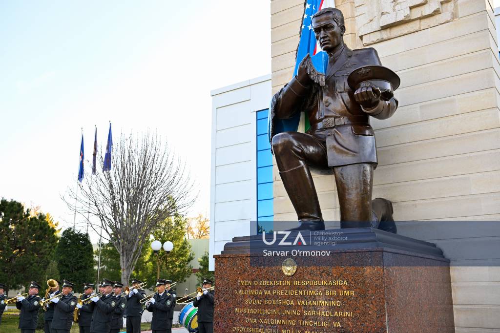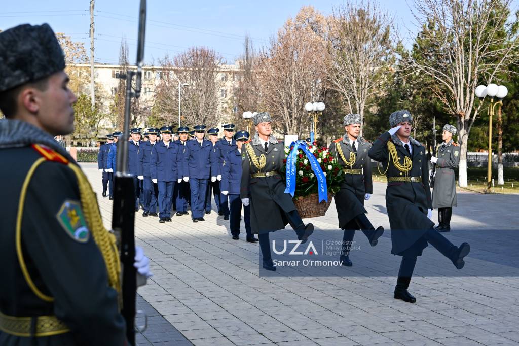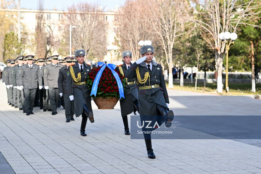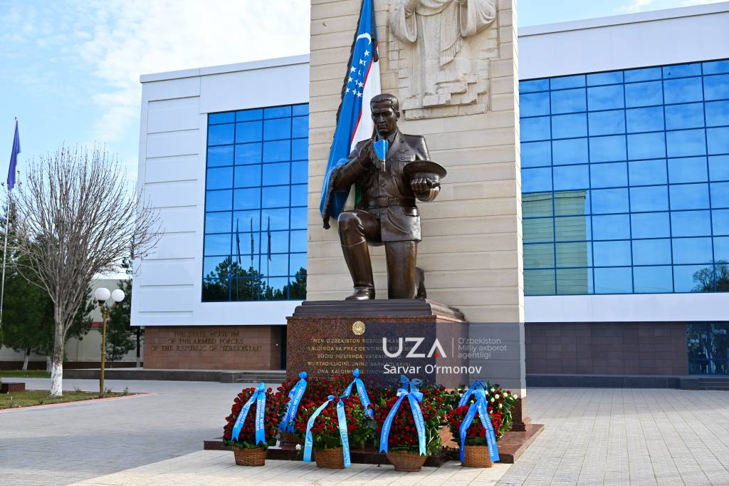 Ўзбекистон Республикаси Қуролли Кучлари ташкил этилганлигининг 34 йиллиги ҳамда 14 январь – Ватан ҳимоячилари куни муносабати билан Қуролли Кучлар давлат музейи майдонидаги “Ватанга қасамёд” ҳайкали пойига гулчамбар қўйилди.