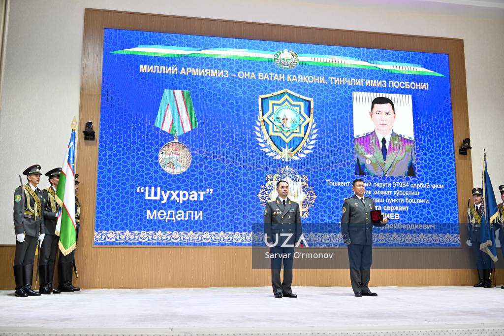 Мудофаа вазири ўз вазифасида собит ва садоқат билан хизмат қилиб, муносиб кўрилганларга давлат мукофотларини топширди.