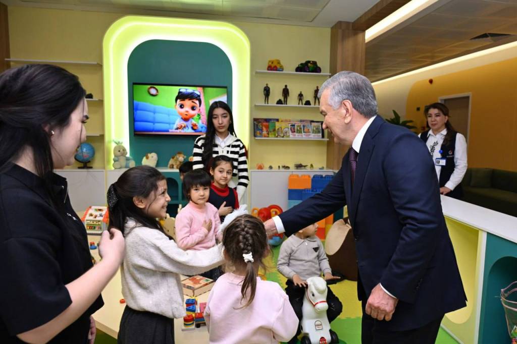 Давлатимиз раҳбари кўп тармоқли марказда ташкил этилган болалар майдончасида ўйнаётган жажжи болажонлар билан суҳбатлашди.