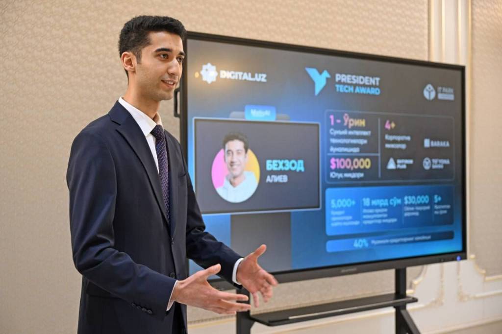 Президент Шавкат Мирзиёев 24 февраль куни Кўксарой қароргоҳида бўлиб ўтган ёшлар билан мулоқот доирасида “Рақамли технологиялар йўналишида энг яхши стартап” – “President Tech Award” лойиҳаси ғолибларининг тақдимоти билан танишди.