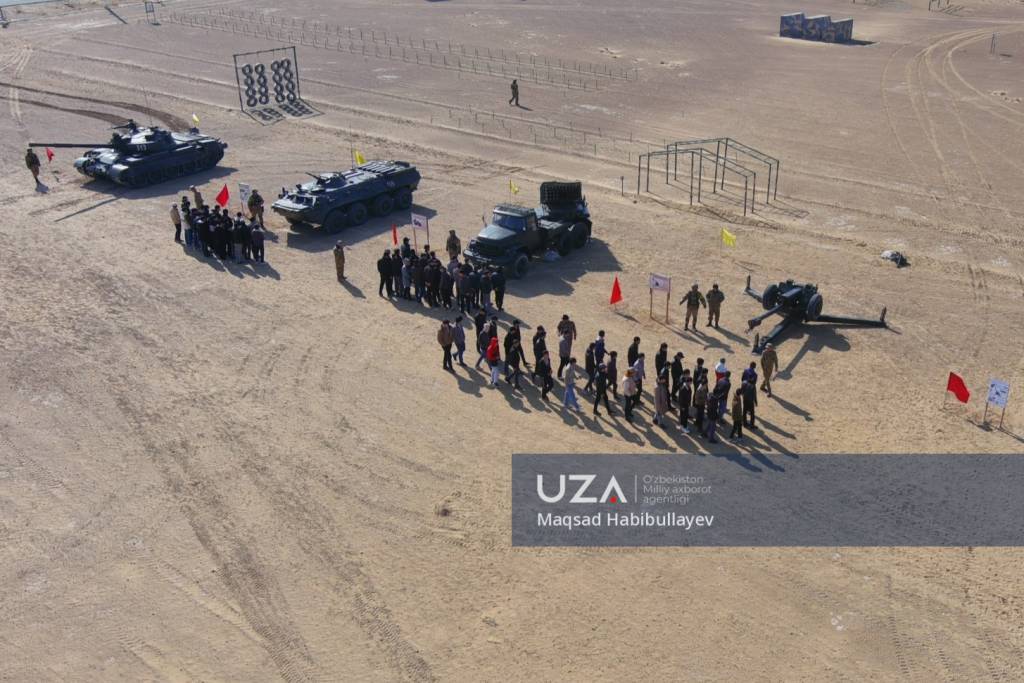 “Нукус” полигонида ўқувчилар ўқ отиш машқини бажармоқда